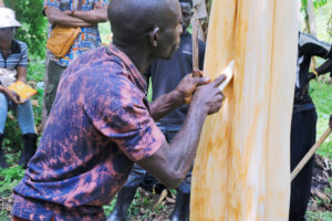 Marakwet Organic Farm practices traditional barkcloth making as part of its agroforestry and cultural preservation work. The barkcloth is produced from sustainably grown ficus (mutuba) trees, which are carefully managed within the farm’s cocoa-based agroforestry system. The trees are not cut down; instead, the bark is harvested in a controlled manner, allowing the tree to regenerate naturally. This practice aligns with the farm’s organic and environmental principles.