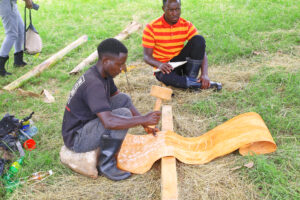 The barkcloth production process is led by an experienced Barkcloth Specialist with over 12 years of hands-on experience, ensuring quality, authenticity, and proper traditional methods. After harvesting, the bark is softened, beaten, and stretched using wooden mallets until it forms a strong, flexible fabric. The final barkcloth is sun-dried and prepared for use without chemical treatment.